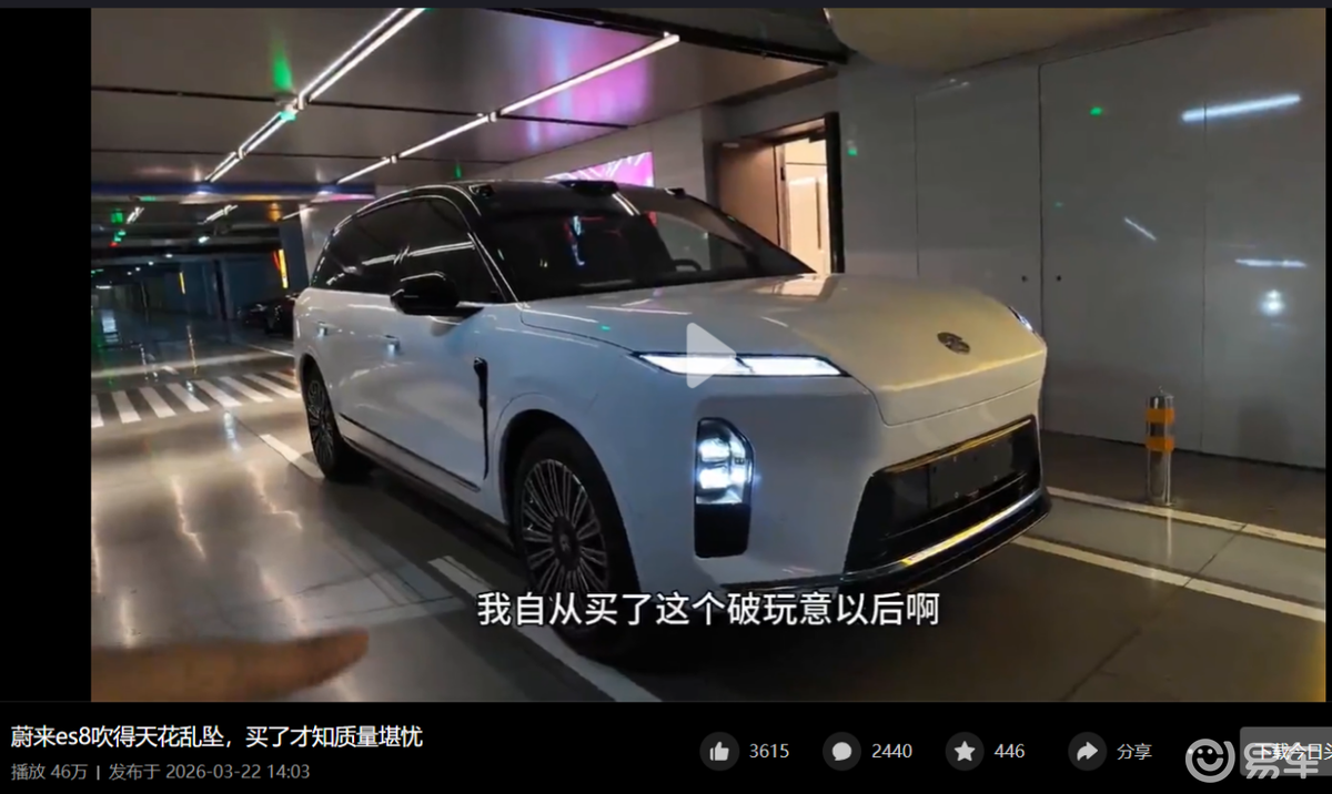 特别提醒:以下基于该车主发布的公开视频内容,整理其反馈的具体问题,仅为消费者用车参考,不代表该车型普遍质量情况,相关问题尚未经蔚来官方核实,蔚来品牌对其产品质量承担最终保障责任。